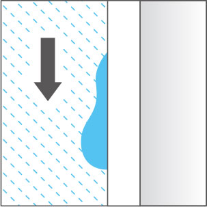 従来の外装材の表面は、撥水性が小さいので、水に濡れやすく、汚れの粒が付きやすくなります。